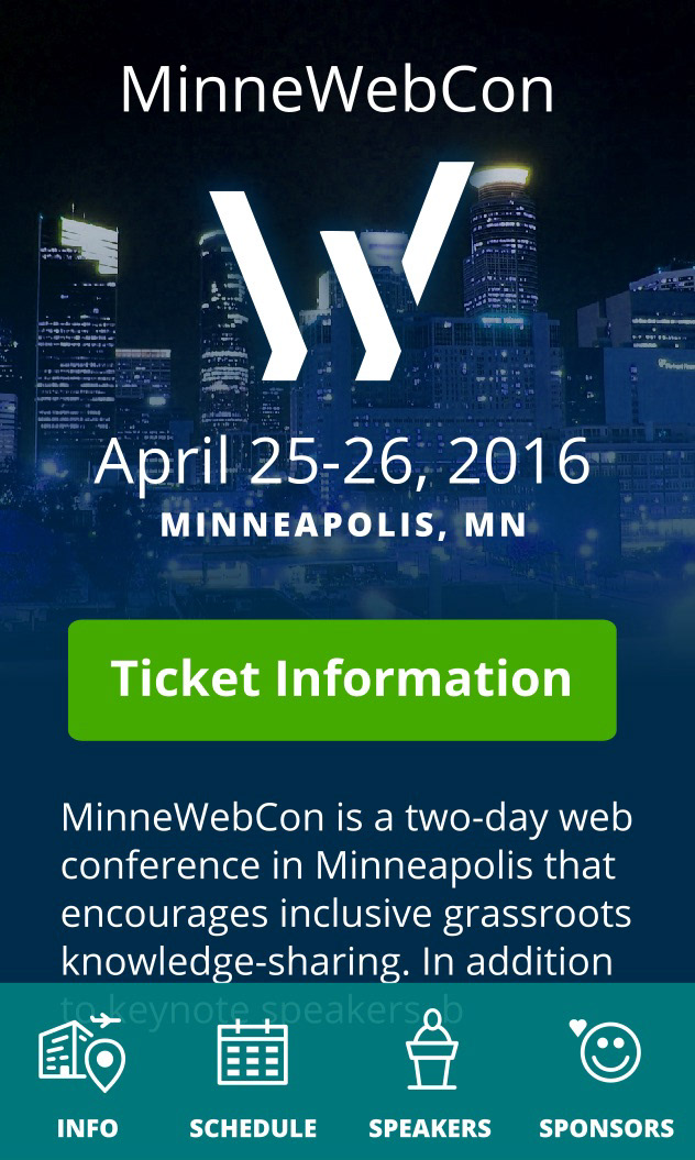 A web site application that allows conference organizers to build a mobile app for their event based on templates and custom data and options. Logo, sample wireframes, and examples of apps built with the tool.
